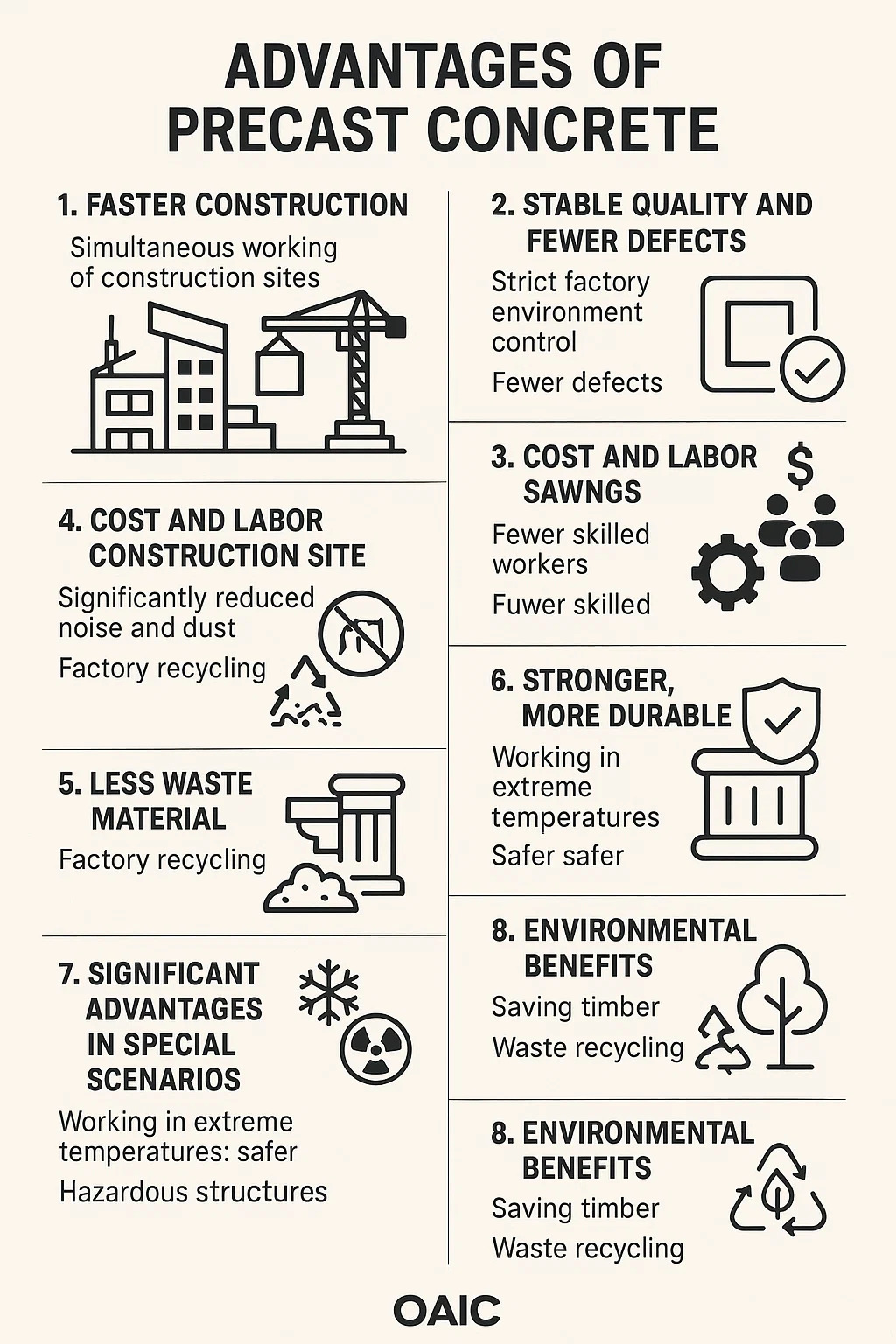 Zde jsou hlavní výhody prefabrikovaného betonu: