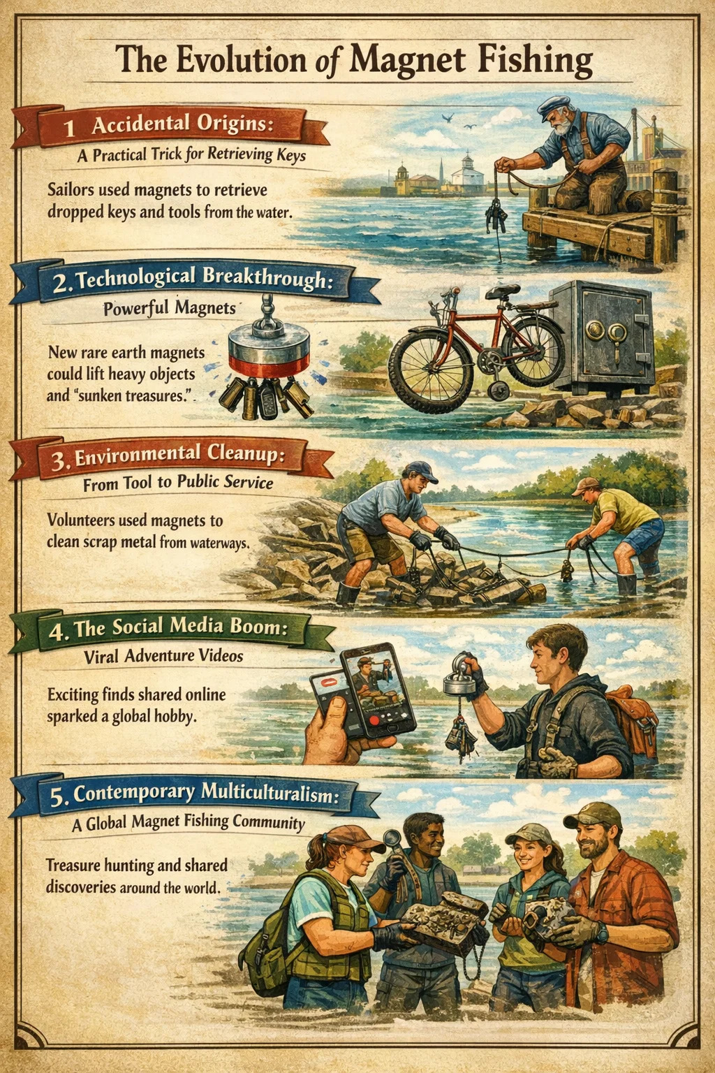 Globální komunita: V současnosti existují po celém světě specializované komunity, kde lidé sdílejí své tipy na vybavení a nejnovější objevy, čímž se magnetový rybolov ze speciálního nástroje stává spojením spojujícím lidi s přírodou a historií.